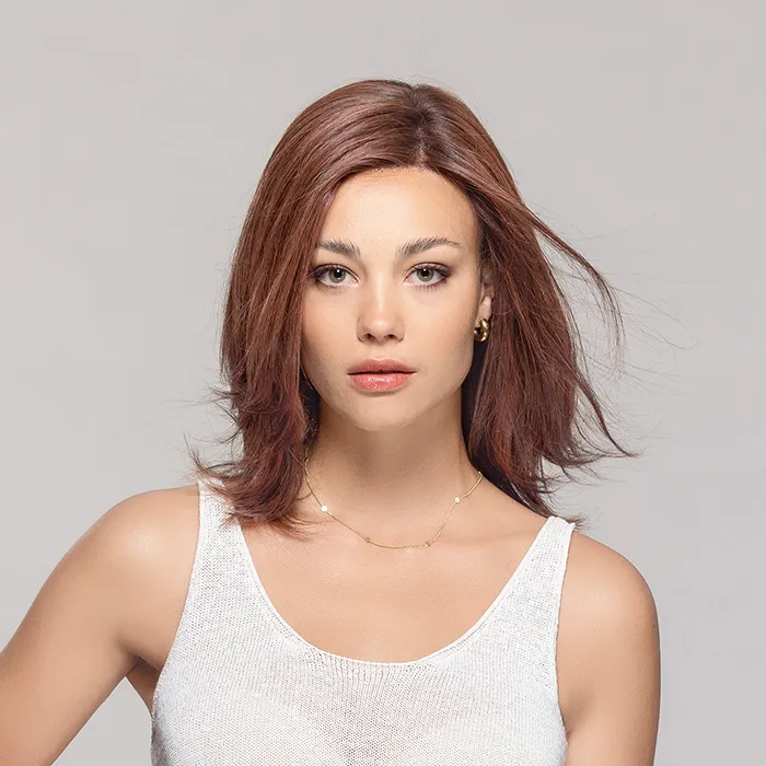 Im Bereich des gesamten Oberkopfes befindet sich Monofilament - ein auf der Haut unsichtbares Gewebe - in das die Haare in feiner Handarbeit einzeln eingeknüpft sind. Der Hinterkopf dieser Perücke besteht aus einer tressierten Montur, bei der die Haare kunstvoll auf feine Baumwollbänder genäht sind. Die Tresse passt sich sehr gut der Kopfform an und verfügt über eine sehr gute Luftzirkulation. Im leicht einsehbaren Bereich des Oberkopfes sorgt das handgeknüpfte Monofilament für besondere Natürlichkeit.