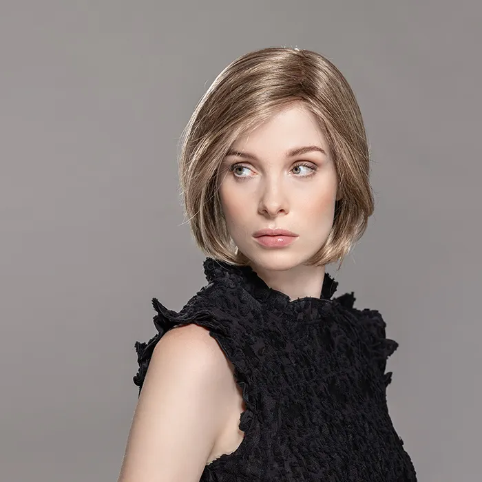 Bei dieser Perückenart ist der Scheitelbereich mit Monofilament - einem hautähnlichen Gewebe - versehen, in das jedes Haar in feiner Handarbeit einzeln eingeknüpft ist. Damit wirkt die Perücke am Scheitelbereich besonders natürlich. Der Rest der Perücke besteht zum Großteil aus einer tressierten Montur, bei der die Haare auf feine Baumwollbänder genäht sind. Die Tressen passen sich der Kopfform an und verfügen über eine gute Luftzirkulation.