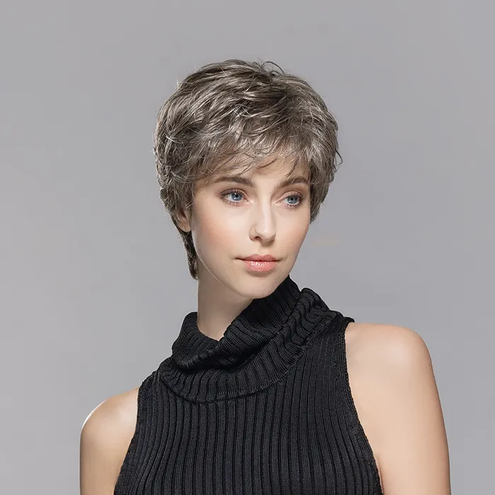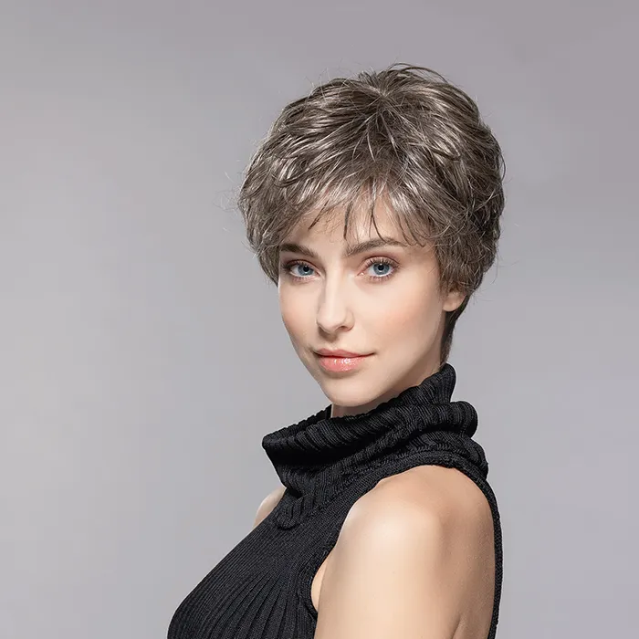 Im Bereich des gesamten Oberkopfes befindet sich Monofilament - ein auf der Haut unsichtbares Gewebe - in das die Haare in feiner Handarbeit einzeln eingeknüpft sind. Der Hinterkopf dieser Perücke besteht aus einer tressierten Montur, bei der die Haare kunstvoll auf feine Baumwollbänder genäht sind. Die Tresse passt sich sehr gut der Kopfform an und verfügt über eine sehr gute Luftzirkulation. Im leicht einsehbaren Bereich des Oberkopfes sorgt das handgeknüpfte Monofilament für besondere Natürlichkeit.