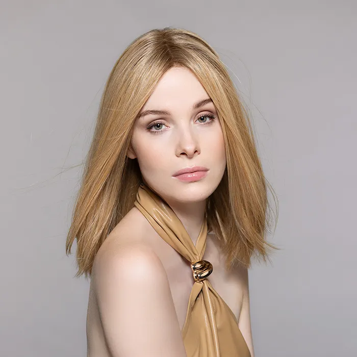 Bei dieser Perückenart ist der Scheitelbereich mit Monofilament - einem hautähnlichen Gewebe - versehen, in das jedes Haar in feiner Handarbeit einzeln eingeknüpft ist. Damit wirkt die Perücke am Scheitelbereich besonders natürlich. Der Rest der Perücke besteht zum Großteil aus einer tressierten Montur, bei der die Haare auf feine Baumwollbänder genäht sind. Die Tressen passen sich der Kopfform an und verfügen über eine gute Luftzirkulation.